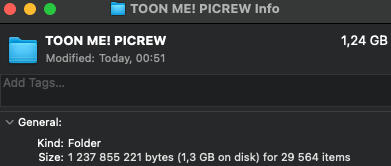 This includes everything from the original PSDs to the final PNGs for both picrews. The item count looks ridiculous because everything is meticulously sorted into folders and subfolders, and the folders also count as items here.